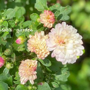 2つの異なるガーデンマムを植え付けました!!📍 ピンク色のジジはもうまあるくなり始めています!