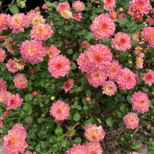 久しぶりの投稿です。 去年 地植えにしたガーデンマムジジです😊 丸くカットしずそのままです💦 蕾が付く前に丸くカットするといいのかなぁ?