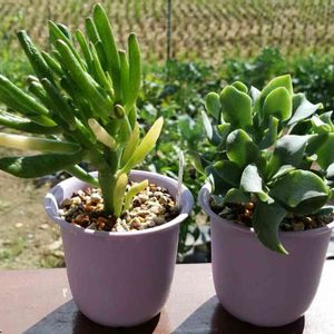 HCに別用で立ち寄り、そんな気なかったのにお持ち帰り…。あるある過ぎますね😅 だってそろそろお日様ないといじけちゃうよって訴えてたから💦 リボンのようにやわらかくうねった葉っぱが素敵なクラッスラさん。葉っぱの色は今はブルー系には見えないけど、この先変化するのでしょうか?楽しみです✨