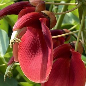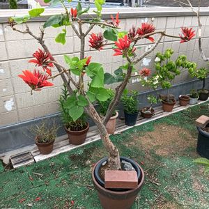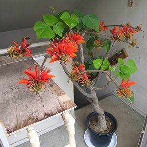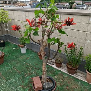 沖縄県花デイゴですがこんな感じで咲いて行きます。そして4年前に咲いた時は3輪でしたが今回は18輪も咲きました。途中でだいぶ蕾が落下しましたが株に対して力が足りなかったのだと思います。しかし鉢でこれだけ咲いたと言う事は枝や株が充実して来ている証拠でありまたこちらの環境にもなれてきていると言う事なので来年はさらに深紅の花がたくさん咲いてくれる事を願っております。何度も伝えますが本土に植栽されている鹿児島県花アメリカデイゴではなくこれがTHE BOOMの島唄に出てくる本当の沖縄の県花であるデイゴになります。