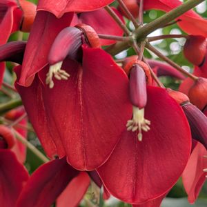沖縄県花デイゴの花が開いて来ました。深紅の花がとても美しいですね。そして本土に植栽されている鹿児島県花アメリカデイゴ(海紅豆)ではなくこれが琉球王国の時代からあり県花でもあり琉球三大名花の一つにも数えられておりThe Boomの島唄に出てくる本当の沖縄のデイゴです。