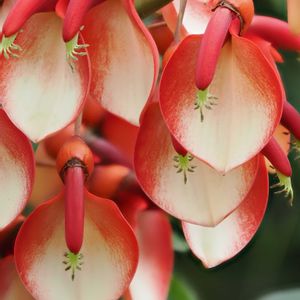 沖縄県花デイゴですがまさに深紅の花ですね。花言葉 愛、生命力、活力、夢、和だそうです。そして鹿児島県花アメリカデイゴ(海紅豆)と違い沖縄県花デイゴは元は天界に咲いていた花とされ仏典では波利質多羅樹と呼び釈尊も旅の道中で見ているそうです。原産地がインドの樹木には仏教と深く関わっている物が多い気がしますね!