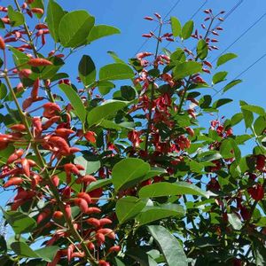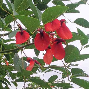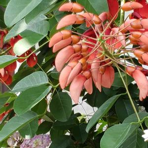 鮮やかな赤い🌼は夏のイメージ🌴 …と思ってるのは自分だけ❔💦 コレはアメリカデイゴ…ちょっと変わっていて花と葉が同時に開くらしい😓 南米が原産地ですが、鹿児島県の県木🌿だそうです。 別名:海紅豆
