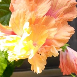 🌈色々がんばった!🌈 最後に残った サンパラソル 月桃 ガジュマル パイナップル 屋外ビニール温室に入るのは かろうじてサンパラソル😅 沢山花付いてたけど💦 スッパリ諦めて 気前よくカットして ビニール温室組み立てて 入れました。(3枚目pic) (詳しくは緑のまとめに) 月桃は四苦八苦して 鉢から外して 根っこ整理して 一回り大きな果樹鉢に植えて リビングに (詳しくは緑のまとめに。。) 2枚目pic 月桃➕ストレチア➕旅人の木 我が家のリビングは南国🏝️笑 4枚目pic こちらも 移動前に 散髪したガジュマルさん ヒョロヒョロやったのが 逞しくなったもんだ。💪💪 1枚目pic 今日のハイビスカス🌺 ハイビスカスカウント ➕5=554💕 おまけpic🐾 朝から ビニール温室組み立てたり 色々植え替えたり 剪定したり お昼ご飯も食べずかーちゃんよー働いた!!😅 諸々片付いて やっと座ったら すかさずオジィ 肩揉めスタイル💦 手を止めたら 横目で 催促😅😅
