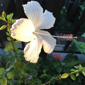 涼しくなっても咲き続けて くれてるお花💕 ハイビスカス・ホワイトバタフライ 背中から朝日を浴びてます💕 神秘的😍