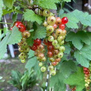 流石にこちらも暑くなってます๑ * ₃*๑)💦 昨日はイベントから帰ってきたら フサスグリの鉢がど〜んと庭に🤣 旦那さんの知り合いから頂きました♥️ 艶ピカの実が眩しいですね〜 貰った本人今日、秋田から帰る予定! 久々の旅行で『土産買わない詐欺』が 復活するでしょうね😌 ✿びわほうしさんから レッドカラントと教えて頂きました😊