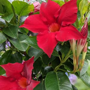 おはようございます ジメジメムシムシの朝です😊 夏の強健種マンデビラの季節♥ツルが伸び無いタイプで花付き抜群なディアマンティーナ 良き1日を♥
