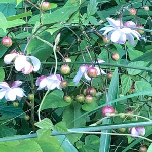 おはようございます😊今日も暑くなりそうです💦青空にうろこ雲…天空は秋モード🍁大きなスズメバチも飛んでました😱ご注意を💦 ひとつだけビアンヴニュさんが咲いてます。真夏に見た花よりも色が濃くなりました😊…それでも春とは別人ですが…😅香りで癒されます☺️