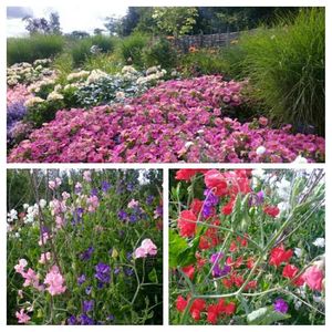 英国王立園芸協会ハイドホール庭園にて。 週末2日間だけイベントホールで開催のサボテン、多肉植物展の為に出かけたのですが、園内至る所が夏花で賑わい、特にカラフルなスイートピーに目を奪われました!