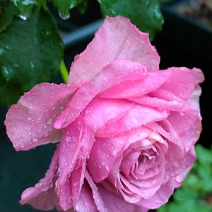 おはようございます😊 アヴニール🌹が雨に打たれながら咲いています。