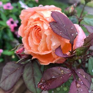 ER レディ・エマ・ハミルトン 挿木の子 銅葉の中に輝くアプリコット その上薫香…╰(*´︶`*)╯♡ 葉物もお花も楽しめる、私の理想の薔薇