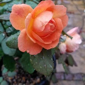 レディ・エマ・ハミルトン 雨の中開花 濡れていても近づくとエマさんのいい香りが💕