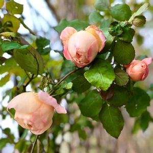 イングリッシュローズのレディ•エマ•ハミルトンさん🌹咲く気満々の蕾がたくさん😊冬は色が濃くなることが多いのですが、淡いオレンジで咲きそうです🧡