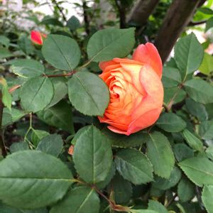 薔薇レディエマハミルトン エマさん初開花🌹 ピンクがかった優しげな夕焼け色イメージでおむかえしたのに、ウチのはビビッドオレンジで咲くことが多い👀 昨年は調子悪く、常に半分がブランドだったけど、今年はまんべんなく蕾がついてます