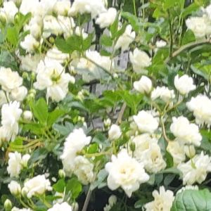モッコウバラ (2枚) 白い木香薔薇。 楠木の下で少し日当りが悪いせいか花数少なめでしたが、咲いてくれただけで嬉しいです🎶