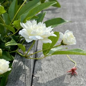 My wood-deck garden 🏡 クレマチスの開花𓂃 𓈒𓏸◌✨ 今年は植え替えを頑張ったので みんな元気いっぱいです♪ クレマチス"雪おこし” -①③ クレマチス"リトルマーメイド” -②④ 4枚目左側はつるバラの蕾🔰♪ 白花のモッコウバラ -⑤ 雪おこし激似🤭ww