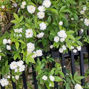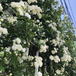 1枚目 モッコウバラ白 咲きはじめました すでに良い香り 嬉しい季節のはじまりです💕 2枚目 オリビア ローズ オースチンの蕾 今年はどのバラも調子良く蕾いっぱい でもなぜかこの子を写真に撮りたくなっちゃう… クレマチス ベティコーニングのつるも 元気いっぱい伸びてます 3枚目 カンパニュラ 涼姫 一年草タイプのカンパニュラ はじめて育てますがすごい蕾の数! バラともちょうど一緒に咲いてくれそうです