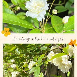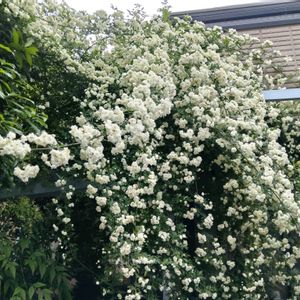 |ョ''ω''〃)おはようございます♪ 2日ほど雨☔が降りぐずついた天気でしたが、今日は晴天☀️になり気持ちもウキウキ・・ まずは小さな庭パト・・ 2年前にお迎えしたモッコウバラ、沢山のお花が咲いています💕 我が家は、黄色ではなく白色なんですよ〜🥰