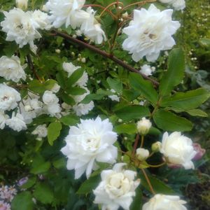 白モッコウバラ🌹🌱クレマチス💮メネシア🙌咲き出しました😂 他のバラにも蕾が沢山付いてます😁 冬の成果が出始めました😂