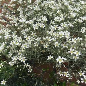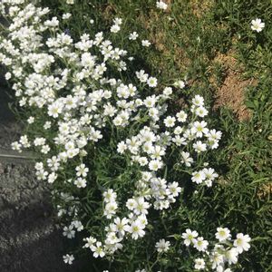 セラスチューム♡ 朝日を浴び、風に揺れる花びらが、 ヒラヒラ〜と、初夏を思わせます。 初めは、芝桜だと思っていましたが、 ココでセラスチュームと教えて頂きました♪ 年々増えてます(*^_^*)🤍
