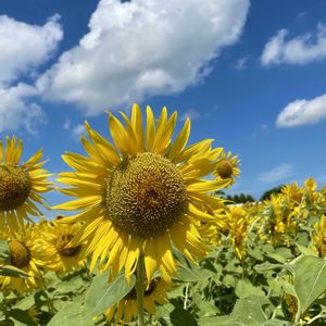 今日のお花 ヒマワリ🌻 日曜日、新潟市アグリパーク隣りのひまわり畑にて撮影 少しお辞儀していて残念でしたが、とっても綺麗でした❀.(*´▽`*)❀. 撮影はやはり、汗だくでした( ˊᵕˋ ;)💦 4、5枚目はスマホ横にして見て下さいね(o・ω-人)