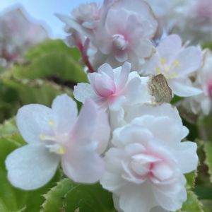 白とピンク🤍🩷と🦗 ➡️切り戻したら、お花の上にちょこんと、、、🦗