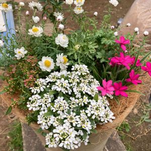 アンアリスをネット購入したので寄せ植え作りました❤️ アネモネ アンアリス チューリップ 赤 イベリス エンジェルベール 花かんざし 2ポット 金魚草 相変わらず手際が悪くて少ししなっとしてしまいました💦 アンアリスは届いた時点で花が終わりかけで葉っぱも少なったのでボリューム不足😭 花かんざしも1つは分けれたけど、もう一つが分けられなかったのでバランスが。。 もりもりしてきたら良い感じになるかな?
