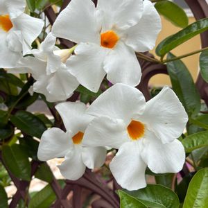 かなりお久しぶりの投稿です! マンデビラ サンパラソルが晩秋になり満開になりました🤍❤️ 2023にサントリーさんから頂いたお花達です。3年目の株ですが、毎年キレイに咲いてくれています。 ありがとうございました!