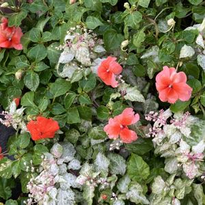記録用です。8月13日撮影📷️ ハイビスカス・スノーフレークとオレンジの日々草の寄せ植え。