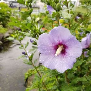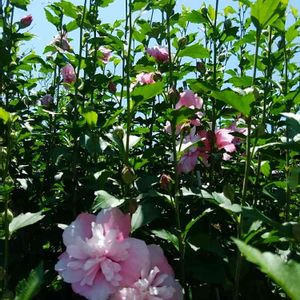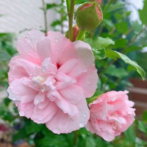 ムクゲの花も咲きはじめました。🌿咲いてる時間は短いですが、ピンク色で可愛く咲いて、好きな花です。💕