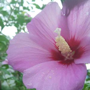 今朝少し晴れ間があり 庭のムクゲの花満開で綺麗でしたので🌿ムクゲの花二回目投稿picですが、見て下さい。🌿😆