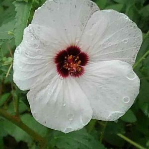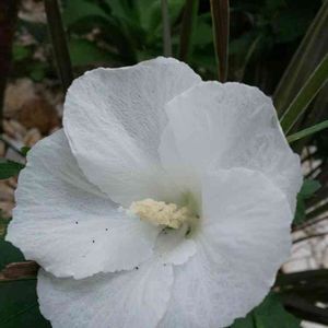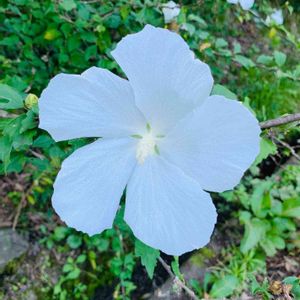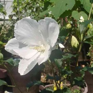 こんにちは✨😃❗ 今日は、とってもいい天気☀️ 秋らしいカラッとした空気です😊 昨年秋、ご近所さんから頂いた枝を挿し木にした ムクゲ** 春に大きな鉢に植え込んでいたけど… 今年は、良い花を咲かせるのは無理っぽい🤔と思っていたら… 今頃になって 大きな真っ白の花 咲きました😍 😆⤴️💓