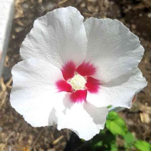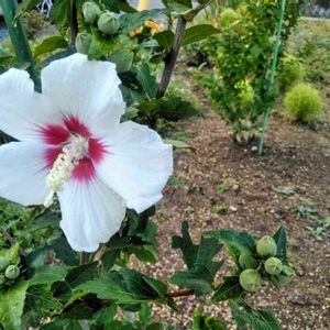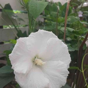 これも今年入手して初めて咲いたムクゲ❗️やっと白のムクゲ咲いた(・∀・)v