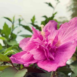 夕暮れのムクゲ💖🌿 しぼんだりしないんですね🦋 実家のお花🌸 株分けしましたがうちのはまだ咲かないのでパチリ😆