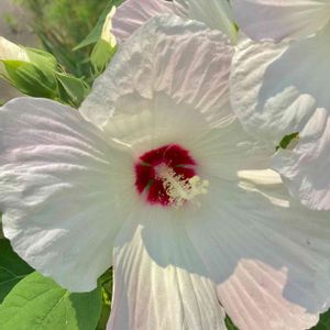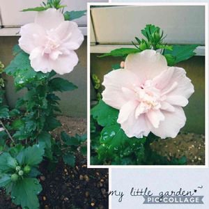 ほんのりピンクの白いムクゲ✨ 親戚の家に咲いていました😆