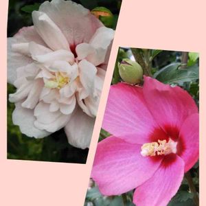 🌸ムクゲ🌸 槿、木槿のどちらの表記でも良いようですね☺ 我が家にはこのふたつがあります。 左手の八重のピンクばかりが好きでしたが 案外右手の普通のも好きかも🤣 もっと気に入ったのは フォロワーさんとこの 紫玉(シギョク)という ムクゲです! 欲しい😍