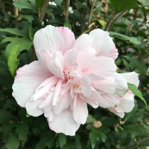🌸うす〜いピンクの八重のムクゲ🌸 昨日のpic 白いムクゲと隣り合わせで 咲いてます 高い位置で咲いてるので 撮るの必死😅 (昨日、間違って フヨウって投稿 してました💦失礼しました)