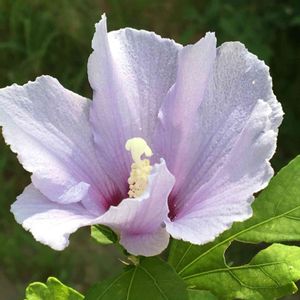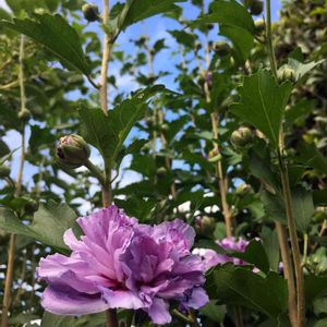 ムクゲ ブルーサテン🌟 もともと成長が遅い上に、切る時期を間違えたのか、花はひとつだけ… 暑さに負けず、太陽に向かって!