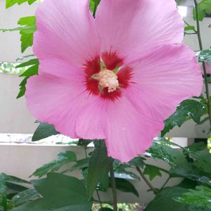 ベランダから見えるお花 ムクゲの花を撮りました。