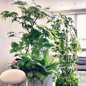 つづき。。。奥右手が昨日のボトルツリー。そして、元々あったパキラ。シュロチク。手前は今回変えたストレリチア・オーガスタ。グズマニア。ドラセナ。へデラ。。。