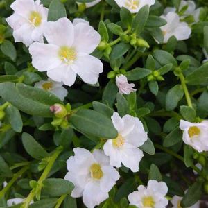 今晩は~すごい雨でした☔ ポーチュラカ💕 シンプルな白が可愛い💛 朝咲いて午後にはしおれて🥀しまうから、なかなか会えませんでしたが23日の帰り道🎵 元気に花開いたあなたに会えて幸せでした💕