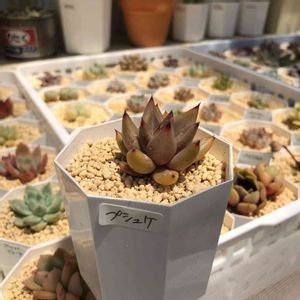 ミニベル錦 ちょっとサイズが大きいですね! 出勤前に販売用多肉を保管してた場所から出しました📦 まだ値札付けてないですが💧 値段のない多肉達は予約ありですので! キャンセルも可能です。 本日は母が1人で対応してます😀