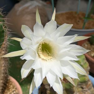 白い水曜日♡🏷️ 白い貴婦人✨🏷️ 毎月13日と14日は葉挿しの日🏷️ などで投稿させて頂きます♪ 昨夜はまたまとまった雨が降り 夜と朝の水やりどちらも やらなくて済み助かりました 雨もその程度に降れば 恵の雨と思えますのにね💦 それであまり外に出なかったのですが 今朝ふと多肉棚を見たら サボテンの花が 忘れた頃に咲いていました😍 しかも水曜日に合わせて 咲いてくれるなんて なんだか嬉しい♡ 2〜3pic目は 葉挿しの投稿になります 今年の5月にお迎えした ジョイスタロック 我が家で最初の夏になるので ちょっとハラハラ というのも斑入りなのでね💦 でも今のところは 母子共に元気そうです 葉挿しベビーもちゃんと斑入り 沢山増えて欲しいな〜🌱🌱🌱 この名前からいつも ジョックロックを連想してしまいます お笑いの方じゃなくて 高校野球の方です 「スタ」が中に入ると おはスタみたいな感じで ちょっと明るい響きになります …ってなんのこっちゃ😅 こちらの地方は 今日からお盆で 仏壇にも鬼灯を飾り 義父が大好きだった 栗の和菓子を供えました ほんの数日 本当に亡き人の霊が 帰って来てくれているといいな 古くからの風習は 大切に守っているんですが 正直帰って来ているとは思えてなくて 本当のところ どうなんでしょうね