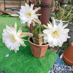 大豪丸とハクリュウマルに花芽が付きました🌵✨️😍😍😍 ハクリュウマルは、今春初めて花芽が付いたにもかかわらず、そのままの状態で終わってしまったので、2つめの花芽がここまで伸びてくれたのはめちゃめちゃ嬉しいです♥️ (その残骸が、白くなって花芽の後ろにいまだ残ってます😅) そして、ふたつとも綺麗に開花... ワァෆ⃛"ღᵒ̴̶̷᷄ᗜᵒ̴̶̷᷅ற”❤︎*. やった、やったぁ!! "٩(•̤̀ᗨ•̤́)۶"💕💕 でも、なぜかお花が似ている...🤔 ハクリュウマルのお花ってどんなかな?ってちょっと期待していただけに、ちょっとガッカリ😔💔 いやいや... 無事咲いてくれたことに感謝しないとですね(^^;) アリガト✧*。 素敵なハロウィンを🎃🕯.* チャンチャン ◔.̮◔✧