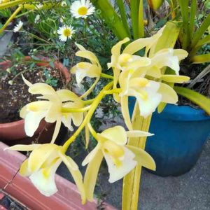 義母が退職祝いでもらったのか義妹が誕生日でもらったのか⁉️ ずっとある鉢植です。鉢のなかは根だけになっているだろうと思いつつも放置してました。 寒い冬も⛄️❄️暑い夏も☀️😵💦耐えて、毎年1~2本咲いてました。今年は暖冬のせいか花の数がいつもより多くて、茎、花共に太く大きいです。 今年は株分けしてみようかと思ってます。