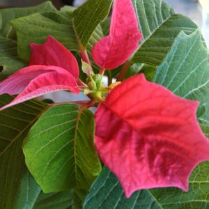 短日処理したポインセチア色づきました。 数枚しか赤くならなかったけれど、それなりにきれいです😊