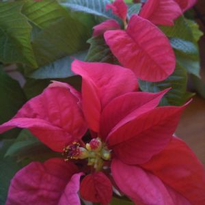 短日処理のショッキングピンクの方のプリンセチア。 こちらも花はまだまだです。 咲いてくれると もっと華やかになってくれそう😊 どんよりしたお天気の中、エントランスが明るくなって助かります🩷🩷