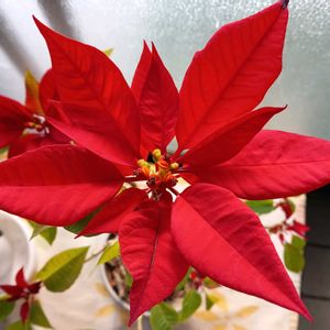 こんにちは😊 ポインセチアの今の様子です。 短日処理から約2ヶ月経過、cu:Leafを与えてから1ヶ月半経過し、とても元気で葉も赤くなってきています🎄 プリンセチアの方は、色の変化がまだないですが、蕾らしいのが出てきたので、これからかなと期待しています! cu:Leafの成果が出てきているみたいなので、夏越ししたシクラメンにも与えて経過観察しています。今のところいい感じ😉
