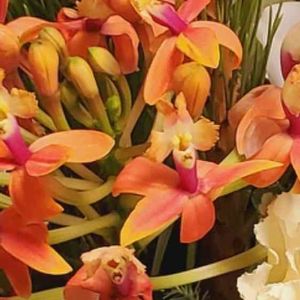 【エピデンドラム・カショク・サイサイ】 《ラン科》 花言葉 『孤高への憧れ』『可憐な恋』『判断力』 『ささやき』 別名 桜姫千鳥 虹毛毯(ニジテマリ) エピデンドラムは中南米に自生する着生ランのひとつです。 着生ランとは樹の幹や枝、岩などの地面とは異なる場所に根を伸ばし生育するランのことを指します。 学名のEpidendrumは、ギリシャ語でdendron=樹木、epi=上を意味します。学名からも樹木に着生している様子がうかがえます。