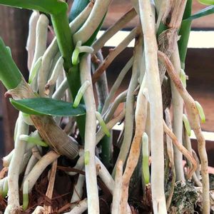 すごい根👍️✨ 蘭は気根が出て良いのでしょうか? 一般的な植物なら根詰まりしてるサインとして 植え替えなきゃと思ってしまうのですが…